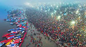 Over 3 crore devotees take a holy dip at Triveni Sangam, the sacred confluence of Ganga, Yamuna, and Saraswati. Experience the spiritual grandeur and divine blessings at this revered pilgrimage site.